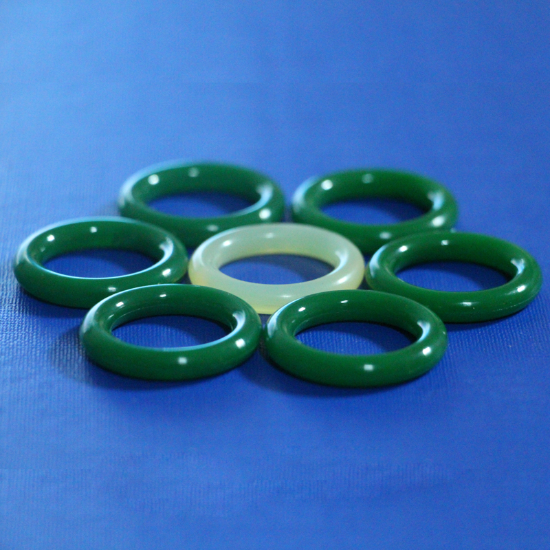 氟橡胶(Fluoro Carbon Rubber) 分子内含氟之橡胶,依氟含量 ( 即单体构造 ) 而有各种类型。现在广用的六氟化系氟橡胶最早由杜邦公司以 ”Viton” 商品名上市。耐高温性优于硅橡胶,有极佳的耐化学性、耐大部分油及溶剂 ( 酮、酯类除外 ) 、耐候性及耐臭氧性;耐寒性则较不良,一般运用温度规模为 -20~200 ℃。特别配方可耐低温至 -40 ℃。 长处: